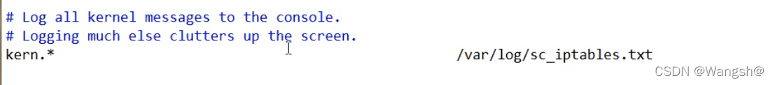 示例:将kern.* 的日志文件放到 /var/log/sc_iptables.txt