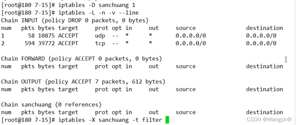 [root@localhost lianxi]# iptables -F -t filter
