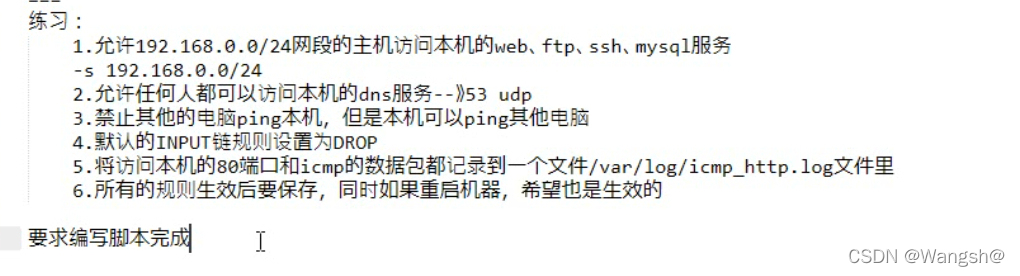 1.允许192.168.0.0/24网段的主句访问本机的web,ftp,ssh,mysql服务