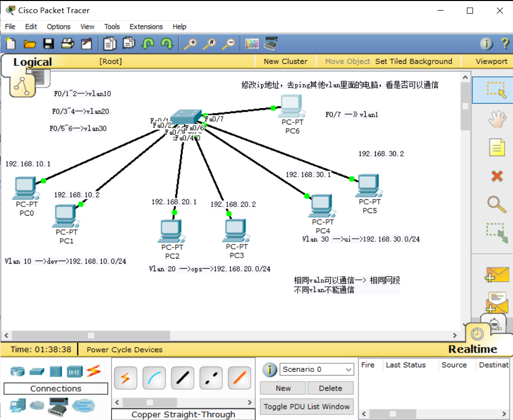 vlan之间的通信问题:使用三层交换机,交换机里面使用路由功能