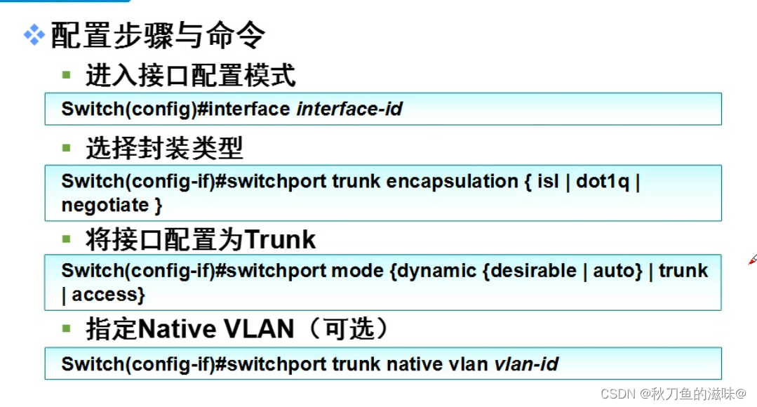 只使用一条链路,且通过表示来区分不同vlan的数据