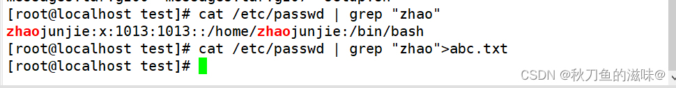 重定向其实做的其实还是grep的工作,将原本输出到屏幕的信息重定向输出到abc.txt文件中去了,还是在grep进程里面做的事情
