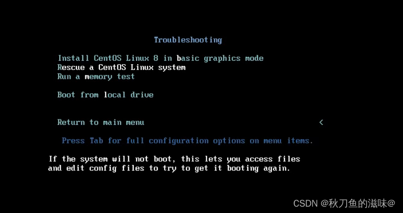 选择troublesbooting 故障处理 --》rescue 营救模式