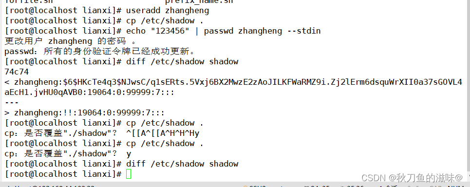 先备份一个 shadow文件,与原文件进行比较,有不同 某些用户密码就进行·了修改