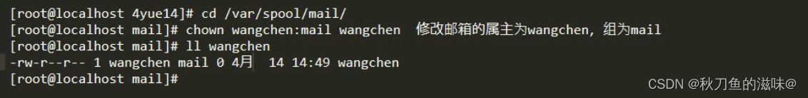 注意:除了/home/wangchen是root用户创建的还有邮箱也是root用户创建的,所以我们也要修改属主