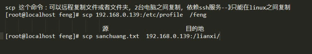 2台电脑之间复制,依赖ssh服务,只能在linux之间使用