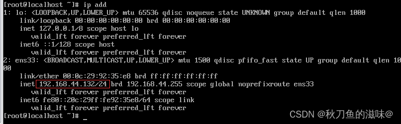 192.168.44.0/24 dev ens33 proto kernel scope link src 192.168.44.132 metric 100