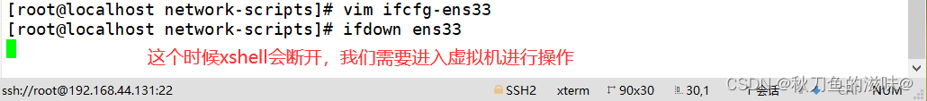 ifdown ens33 禁用网卡 不能上网,没有ip地址