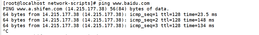 刷新完成后 ping一下百度,能ping通说明网络能正常上网