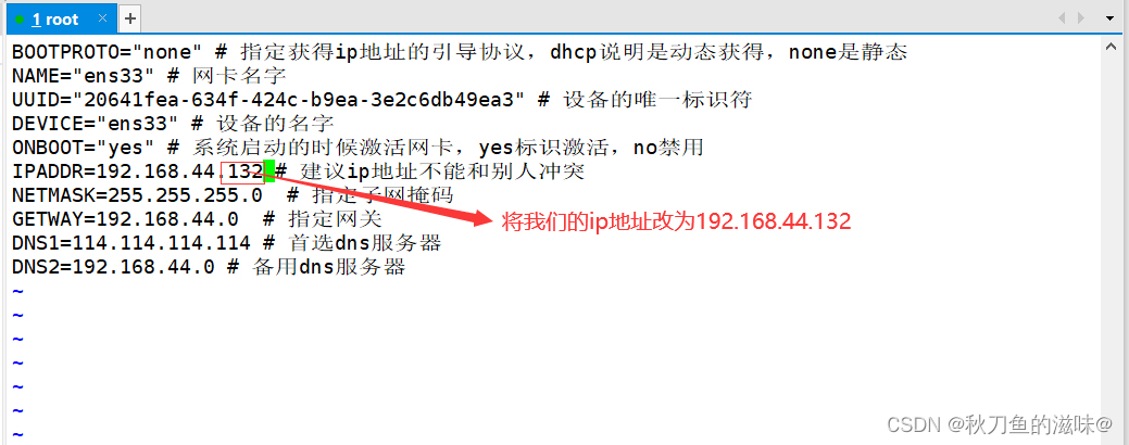 BOOTPROTO=none # 指定获得ip地址的引导协议,dhcp说明是动态获得,none是静态