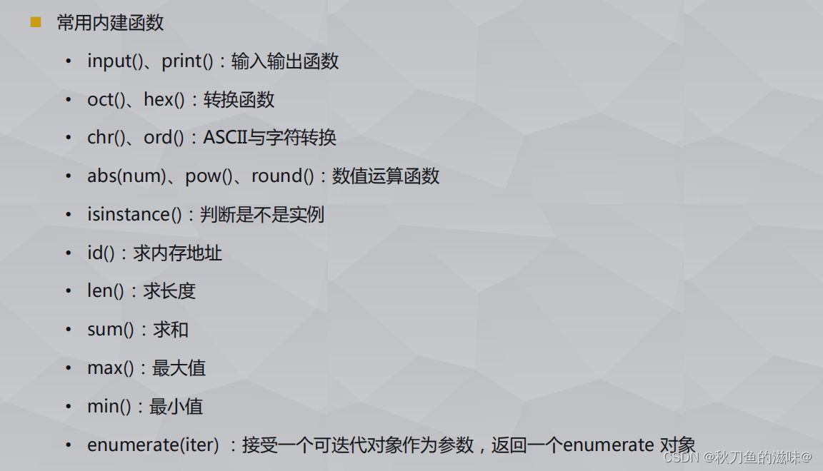 内建方法就是指一个自带的对象所带的方法,例如list的pop方法