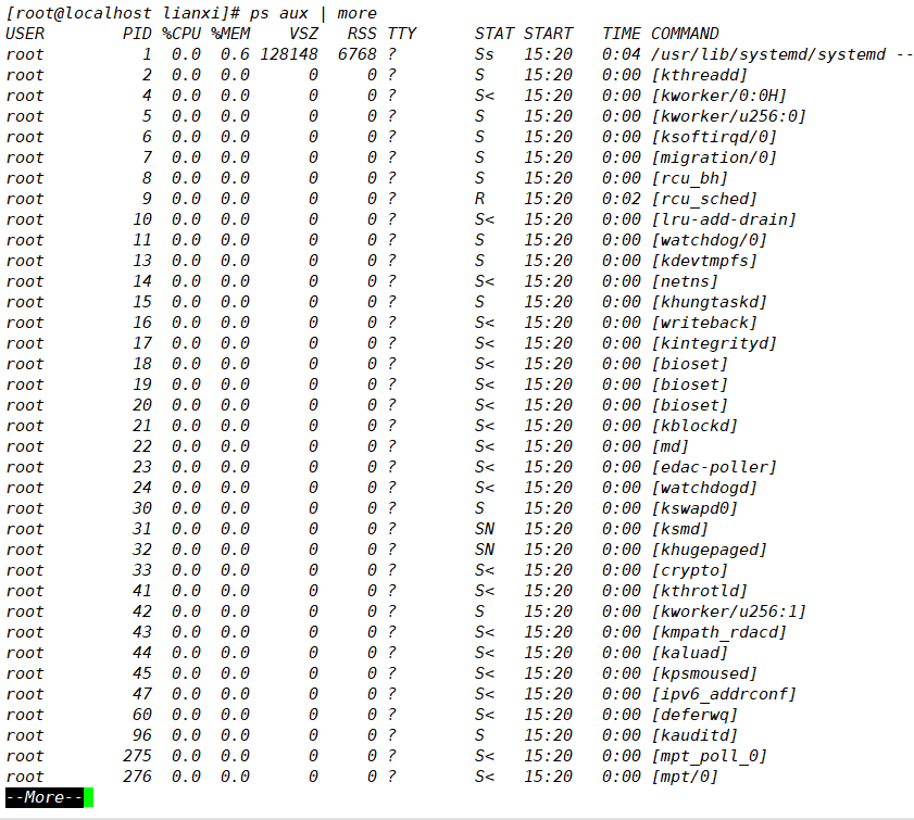 Linux - ps aux ,more,less,head,tail,head和tail的高级用法,使用tail 动态监控某个文件的变化
