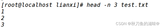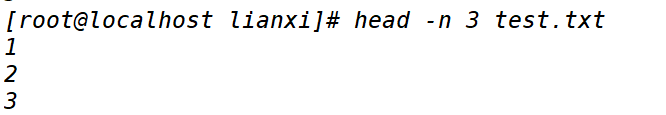 格式 :(1) head -n number 文件名 取文件的前多少行内容显示出来