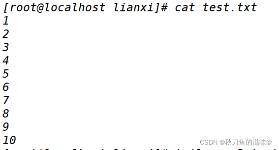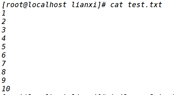 1.首先新建一个test.txt文件,在里面输入1..10,