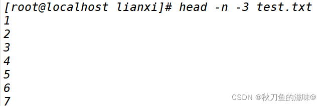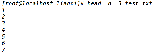 (1) head -n -数字 从文件开头开始输出到指定单元数