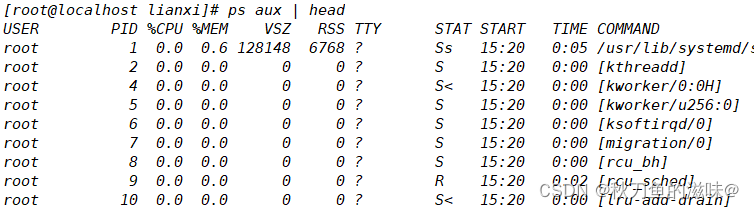 ps aux 是用来查看Linux系统里当前这个瞬间的进程的信息的命令