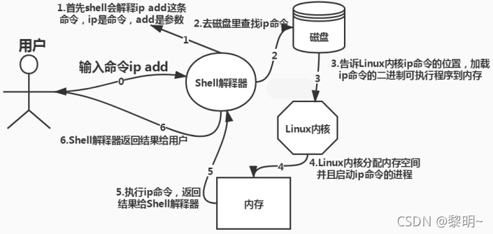 // man + 命令 : 查看此命令的使用手册 (查看使用手册完毕后按q退出)。