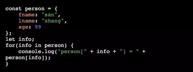 for-in 循环遍历的是对象的属性,而不是数组的索引。因此, for-in 遍历的对象便不局限于数组,还可以遍历对象。例子如下: