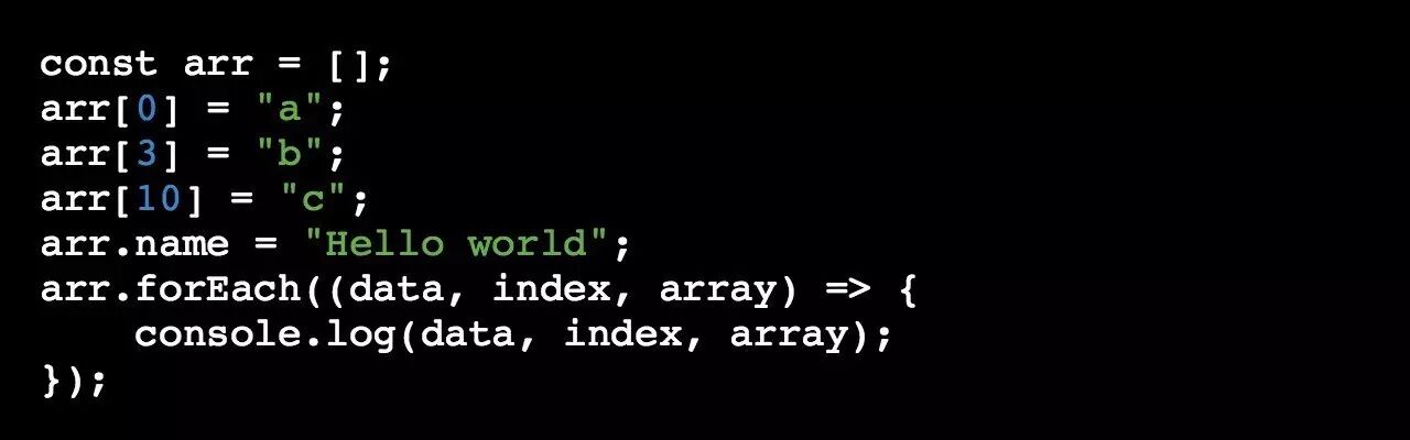 写到这里,我们可以发现 for-in 并不适合用来遍历 Array 中的元素,其更适合遍历对象中的属性,这也是其被创造出来的初衷。却有一种情况例外,就是稀疏数组。考虑下面的例子: