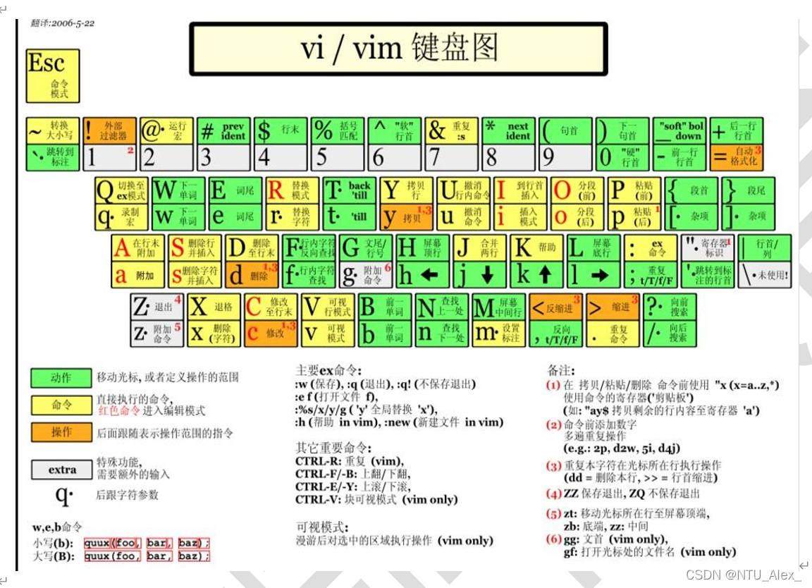 以 vim 打开一个档案就直接进入一般模式了(这是默认的模式)。在这个模式中,你可以使用『上下左右』按键来移动光标,可以使用『删除字符』或『删除整行』来处理档案内容,也可以使用『复制、粘贴』来处理你的文件数据。