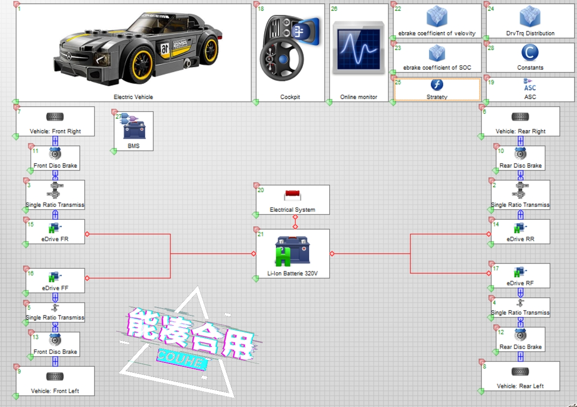 cruise仿真模型,四轮驱动。