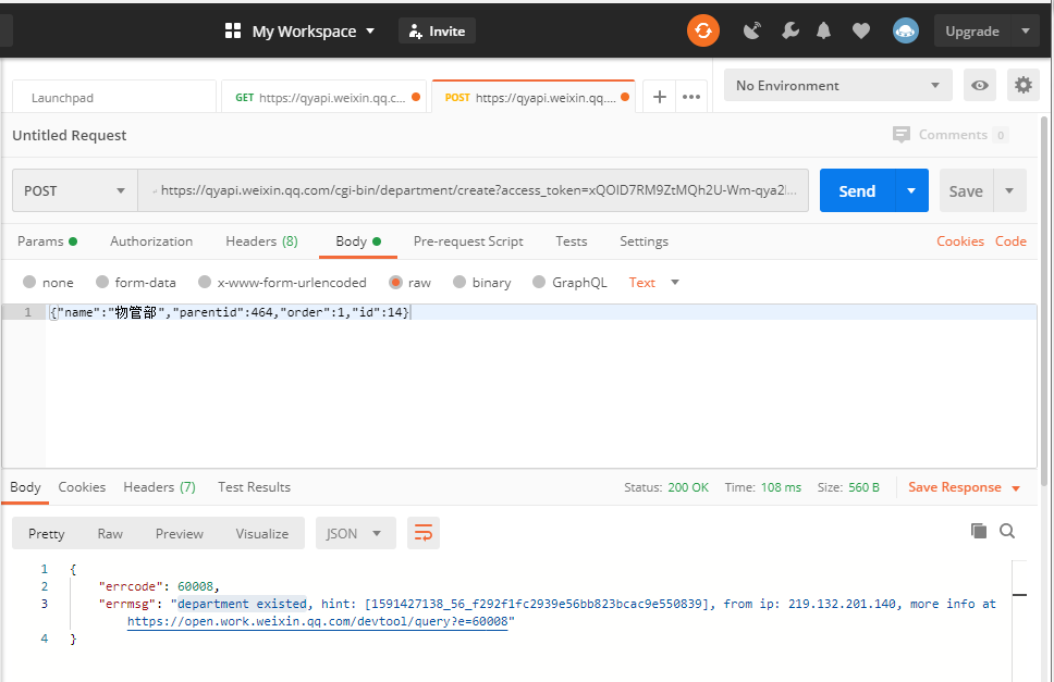 Postman 调试企业微信的API接口