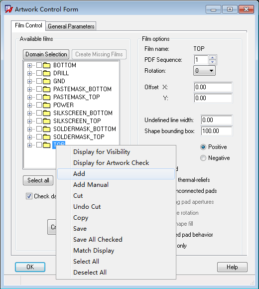 【1】使用manufacture----artwork...打开出光绘的对话框