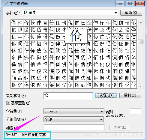 *****查找特需符号,可以用安装输入法来获取,如果未安装输入法,也可以win+r输入charmap来获取unicode等编码数值