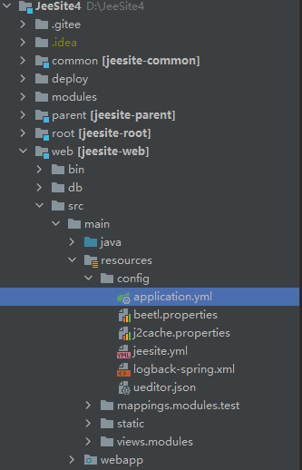 2.修改JeeSite4/web/src/resource/config/application.yml文件里的配置,连接数据库