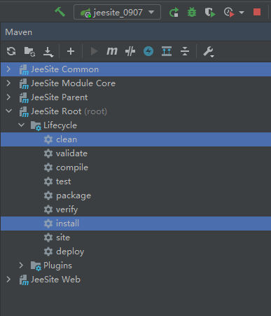 6.通过IDE main class方式运行,crtl选择maven view ->Root->Lifecycle的clean和install,然后点击运行即可