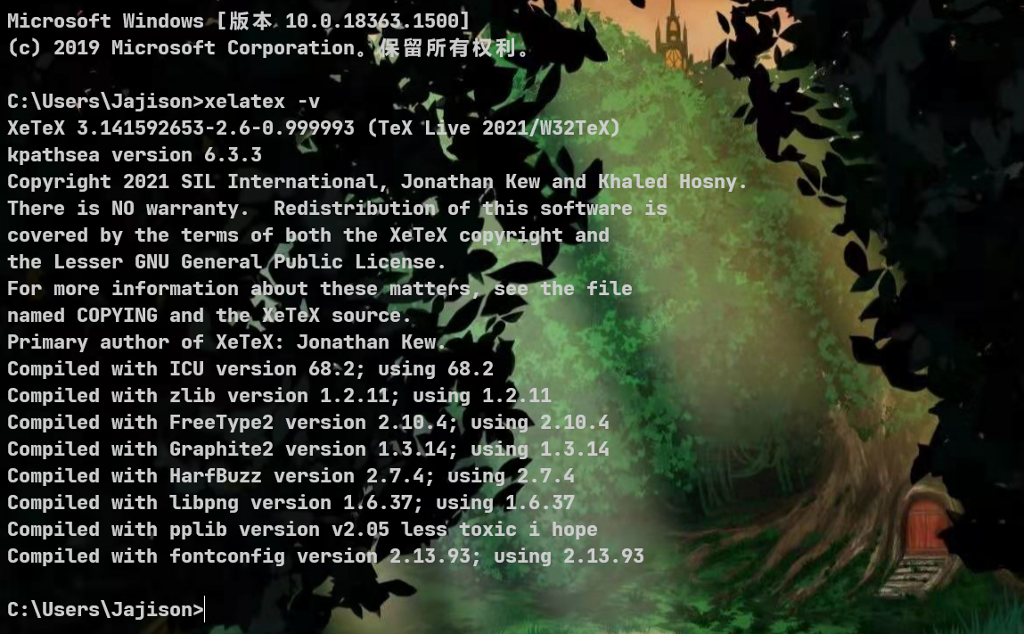 安装完成之后,可以在命令行输入xelatex -v来检查是否安装成功。