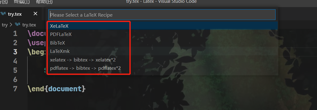 3.配置你的LaTeX插件,设置配置文件
