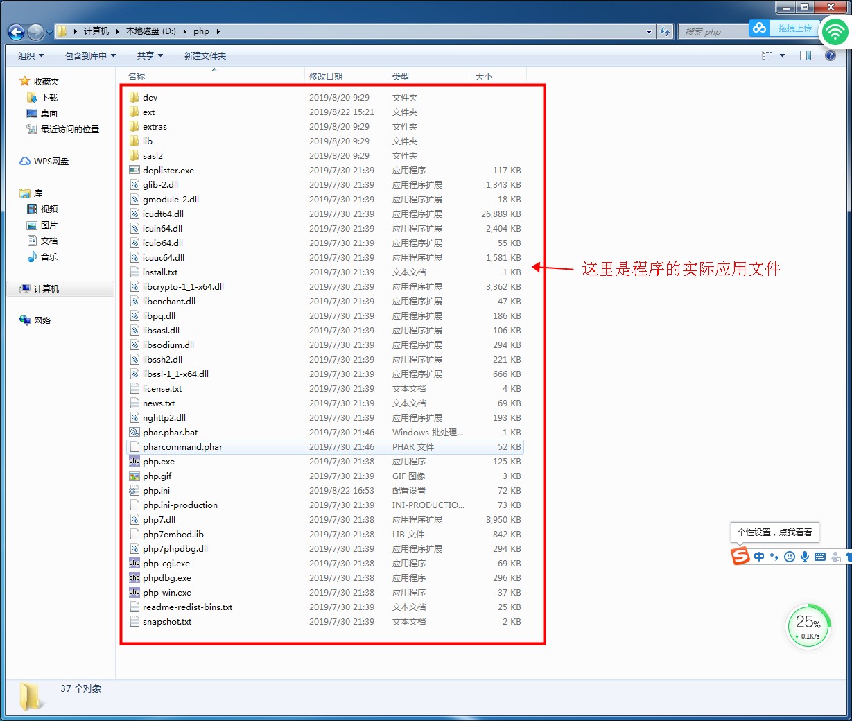 以上两步做完以后即可安装php。php的文件下载完以后解压到你认为合适的目录。建议:直接把程序应用文件复制一下,粘贴到自建的php文件中。如图:我在d盘新建了php文件夹,然后在解压出来的文件中进入到应用文件,把所有文件复制到php,这样能避免程序路径过于冗杂。