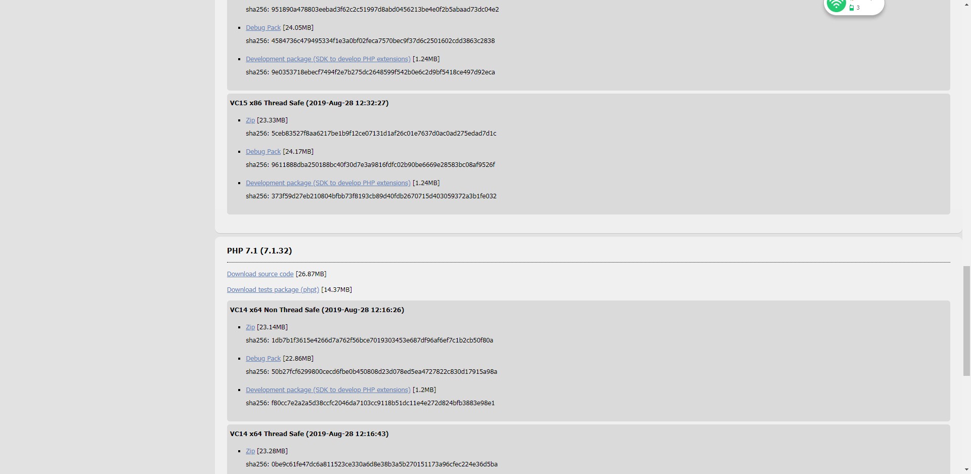 在这里简单说明一下,官网下载地址中,首先php有很多版本,截止今日2019年8月27日最新的应该是一个7.4.几的 但好像还没发程序包,总之没找到下载地址,最新的能找到的是我上面的7.3.8,