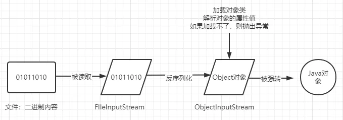将对象从文件中读出来,需要先反序列化,然后再转为对应的Java对象,并恢复对象属性值