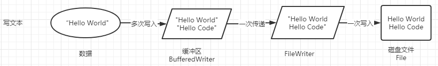 BufferedWriter:程序可以写多次到缓冲区,等缓存区满了再一次性写入到磁盘中