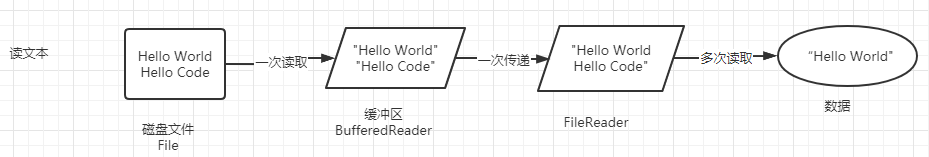 BufferedReader:程序可以从磁盘一次性读很多数据到缓冲区,再从缓冲区一次次读,等缓冲区为空时再去磁盘读;