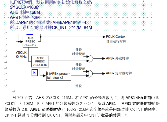 clock source:一般选内部时钟。(CK_INT)。TIM1 TIM8 高级定时器,是挂在APB2时钟线上的,其他定时器是挂在APB1时钟总线上的。中文手册664页。