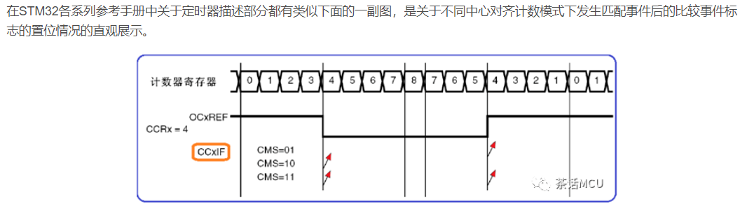 //中心对齐模式123指的是 CNT = CCR,在一个周期内,有两个点,决定哪个点产生更新。通常可结合RCR确定adc触发位置。