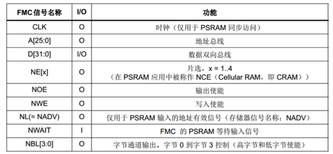 NBL[x:0]高低字节控制信号,NEx片选信号,NOE读使能信号和NWE写使能前面的字母N(Ngative)示这几个信号低电平有效。
