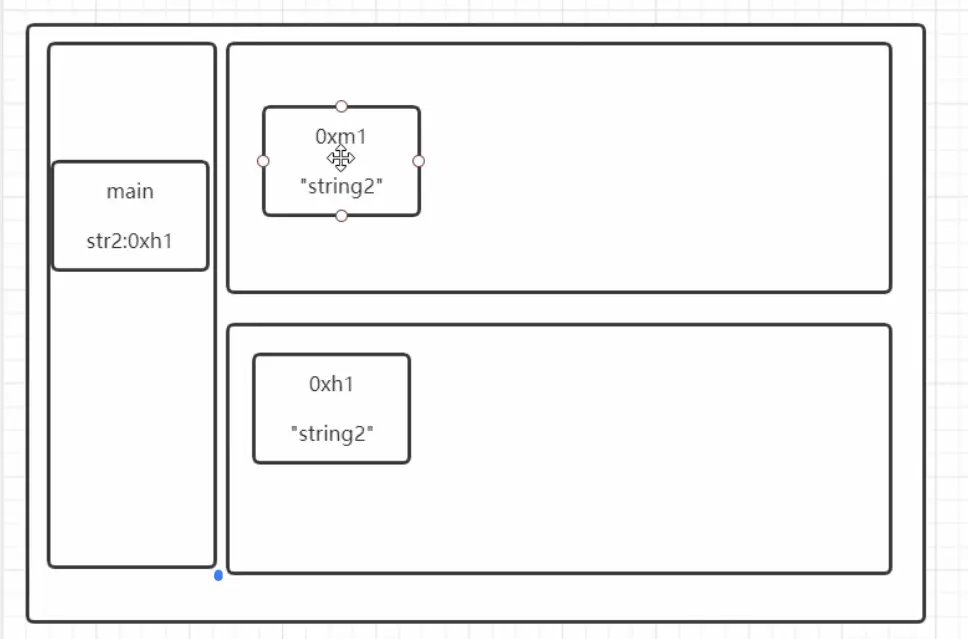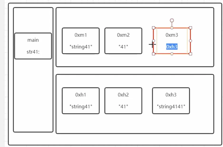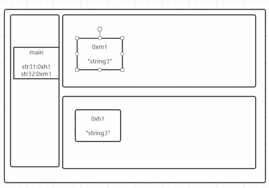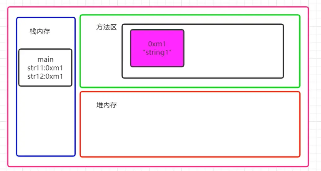 即如果两个string字符串常量相等,那他们共享一个常量池中的地址(数据)如下 都指向0xm1