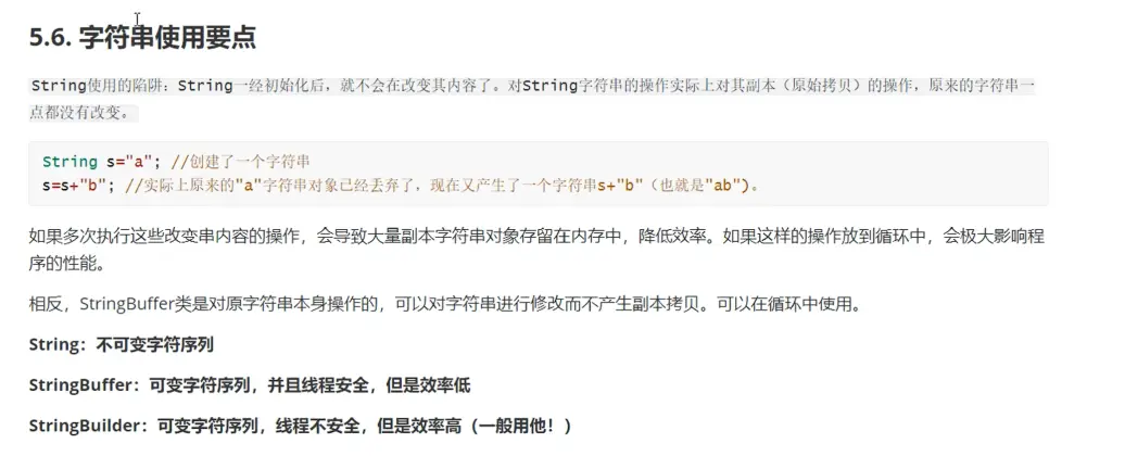 绝大部分情况还是以String为主 如果多字符串拼接可考虑StringBuffer&StringBuilder