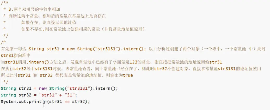 System.out.println(str31==str32);//false 一个地址指向方法去 一个指向堆内存
