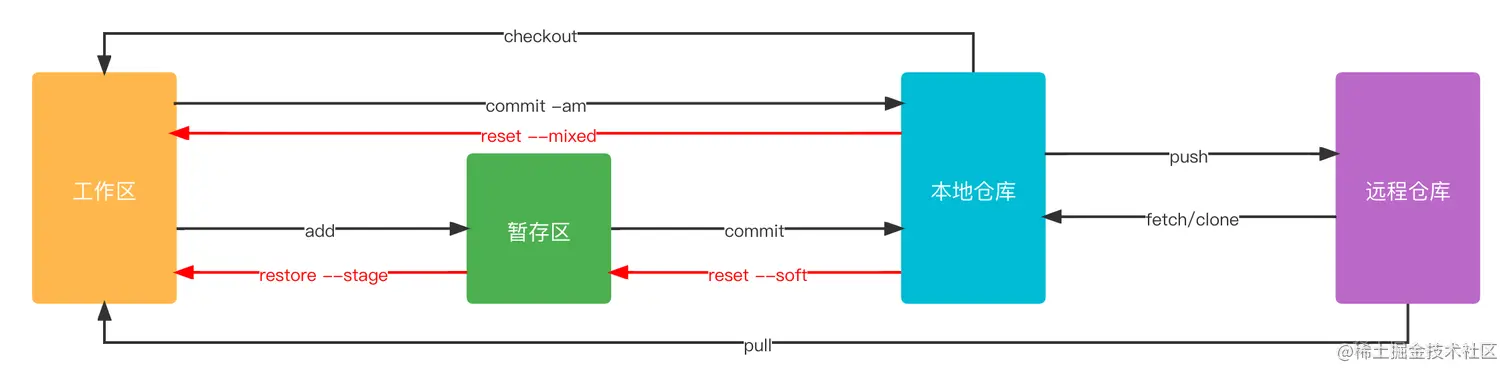 - 工作区:你在本地编辑器里改动的代码,所见即所得,里面的内容都是最新的