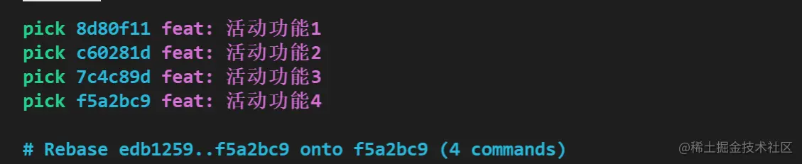 git merge 前面在 git rebase 内容中也提到过,用于合并代码,用法和 git rebase 类似: