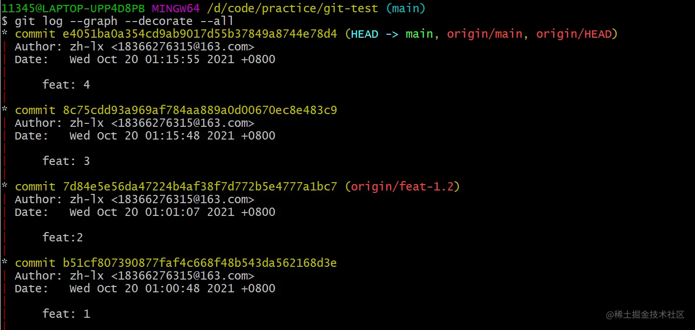 ## 例如先执行 git commit -m "commit1" 提交了文件a,commit_sha为hash1;再执行 git commit --amend --no-edit 提交文件b,commit_sha为hash2。最终显示的是a,b文件的 commit 信息都是 "commit1",commit_sha都是hash1