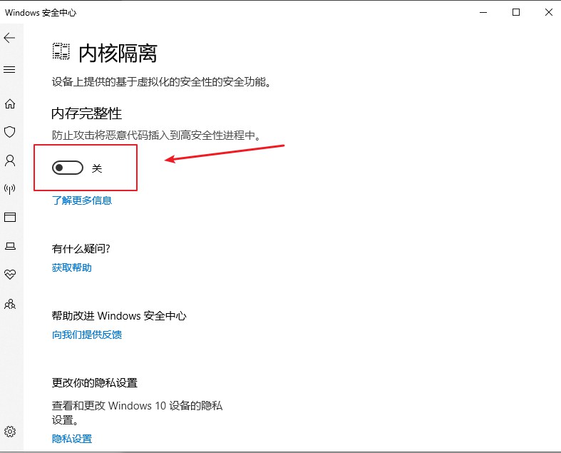 3. 关闭内核隔离,重启电脑。重启完最好检查一下是否关闭,我第一次操作的问题没关闭,头秃了很久。