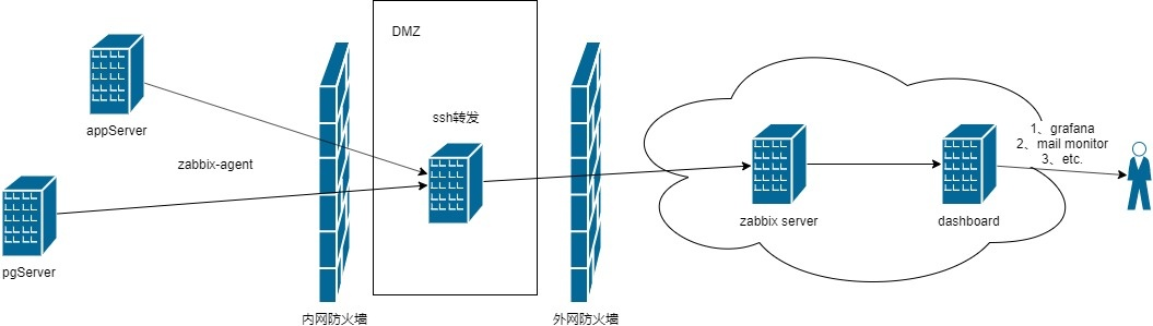 由于外网服务器无法主动去内网服务器中拉取服务器信息,所以采用zabbix agent active模式,由内网服务器主动将当前状态推送到云端。