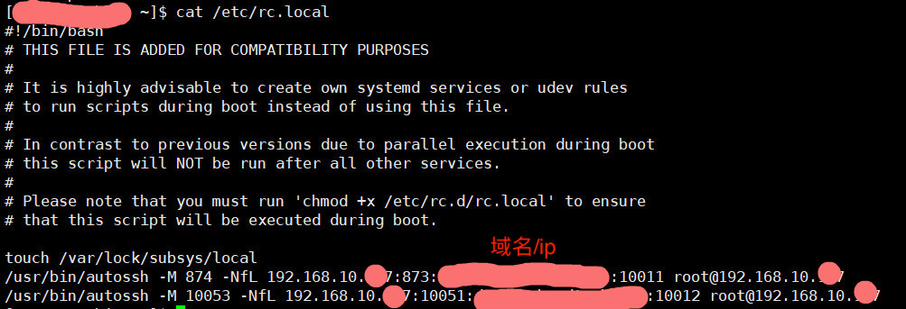 为了解决开机自启的问题,我们可以在/etc/rc.local中配置