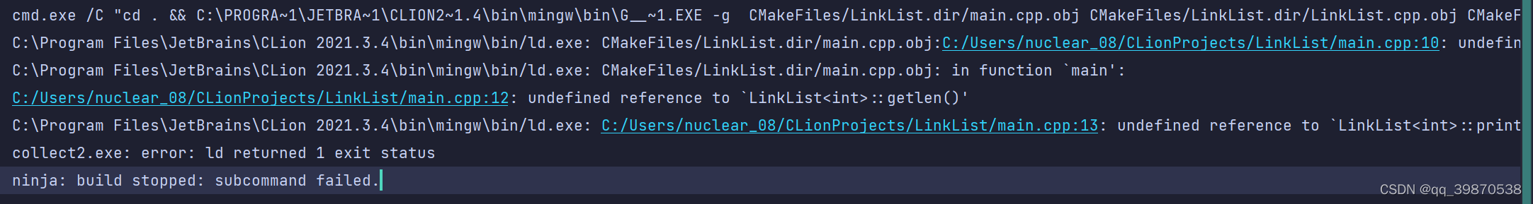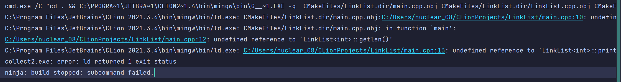 最近心血来潮突然想试试clion,把之前的一个链表程序迁移过去总是报错,